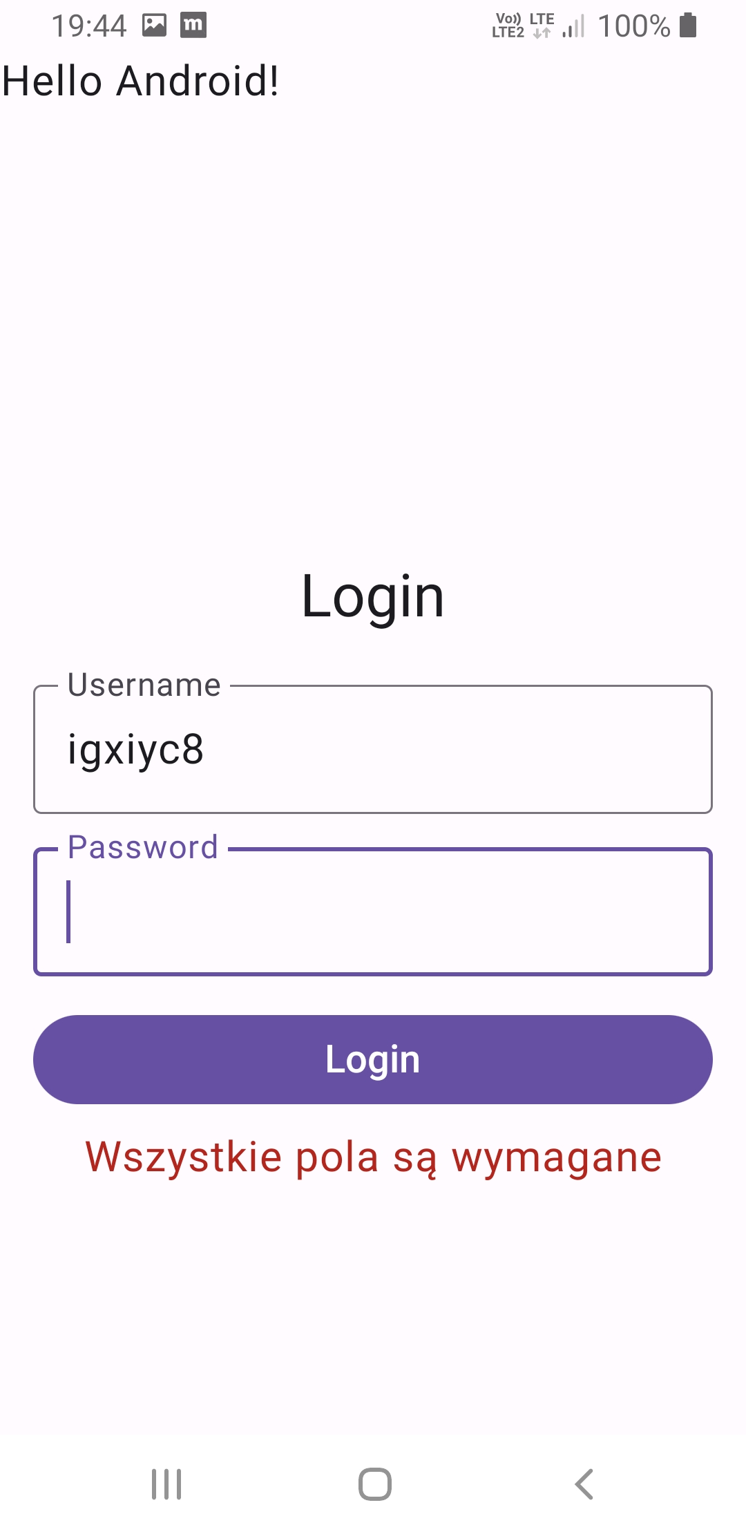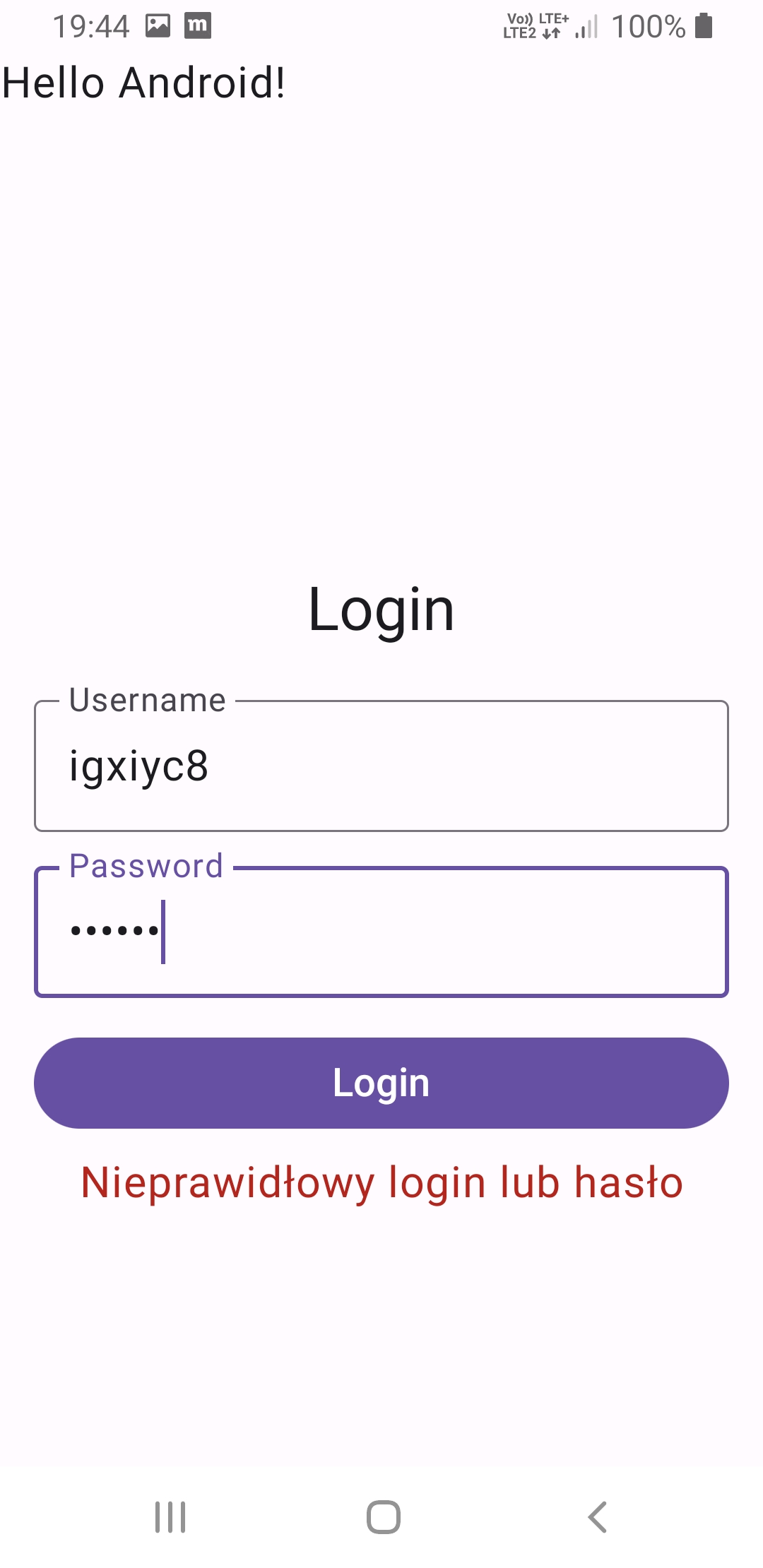 logowanie, po zalogowaniu informacja w LogCat